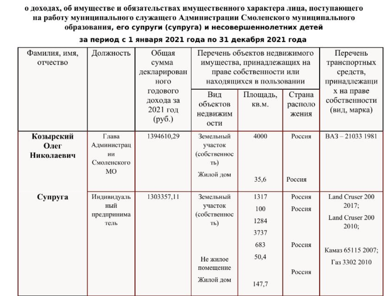 Глава администрации МО Смоленщина Алексей Минулин сдал декларацию о доходах за 2022 год, которая на 100% совпадает с декларацией о доходах за 2021 год его предшественника Олега Козырского. Казус ситуации в том, что совпадают даже сведения о доходах и имуществе у жен. А Олег Козырский, который много лет руководил Смоленщиной, не так давно умер.
