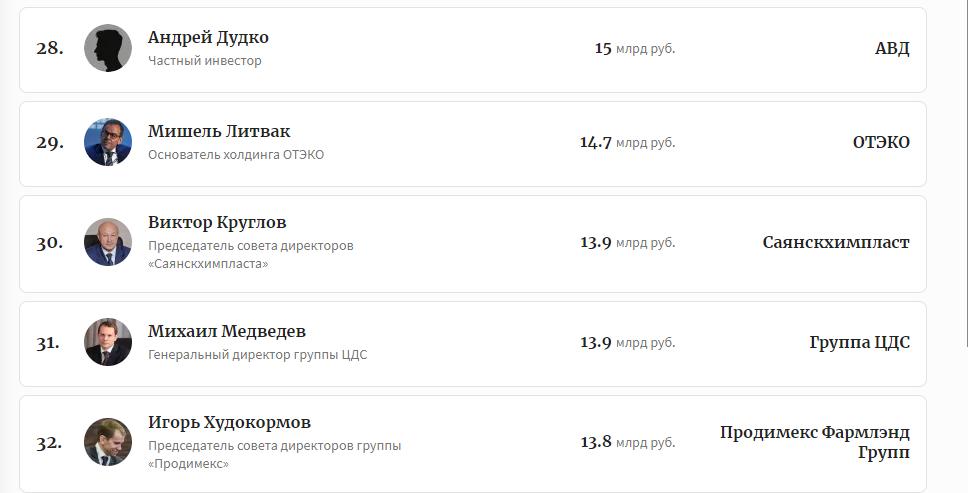 Круглов оказался аж на 30-й строчке рейтинга россиян с наибольшими суммами дивидендов за 2023 год.