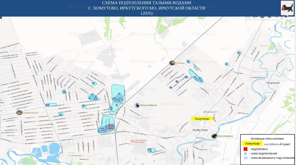 МЧС создало карты подтопления участков на территории Иркутской области. На ней отмечены местности, которые могут