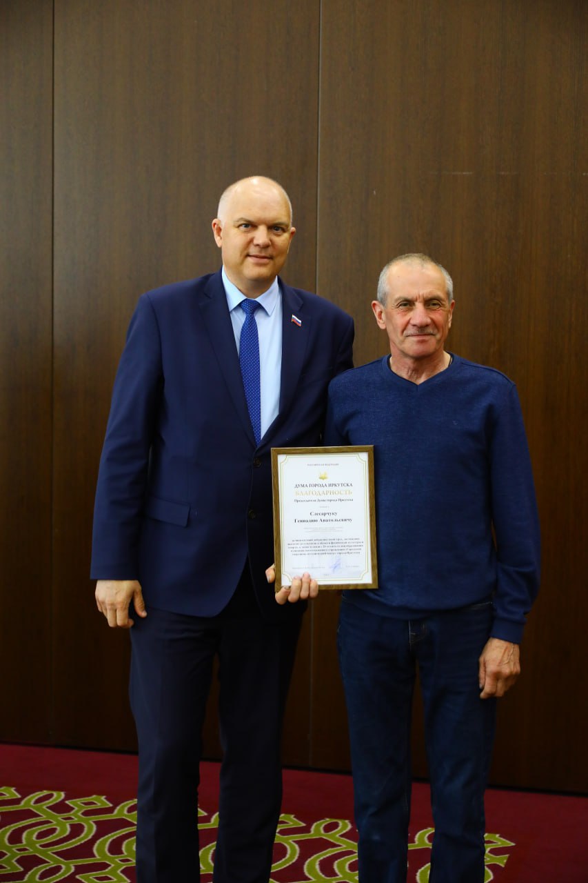 Почетные грамоты Думы города Иркутска получили тренеры Евгений Ивашечкин и Сергей Шевелев. Благодарственными письмами председателя Думы награждены Виктор Алябьев, Елена Гобрайх, Сергей Лузгин, Валентина Мунгалова, Алена Найденова, Дарья Рудых, Анастасия Слепнева, Геннадий Слесарчук, Алена Шаравина и Юлия Фурман. Также благодарственное письмо Председателя Думы получил первый руководитель ГСМЦ Юрий Кавердин.