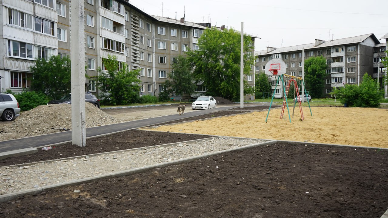 Рядом с этим двором ведутся работы в рамках нацпроекта «Безопасные качественные дороги». Там запланированы работы по реконструкции ул. Ленинградской с асфальтированием, обустройством пешеходных зон, переустройством колодцев ливневой канализации, заменой элементов освещения, также будут выполнены искусственные дорожные неровности и озеленение.