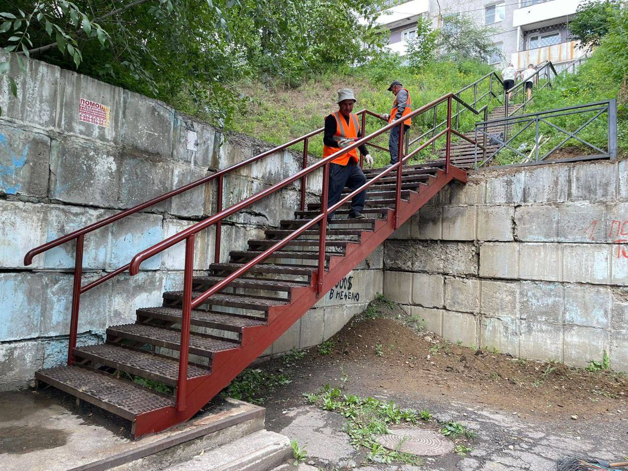 У 107 дома отремонтировали и покрасили лестницу, установили лавочки. По адресу Университетский, 108 установили ограждение у детского сада. В районе домов 107, 108, 110,112 провели ямочный ремонт арок и дороги.