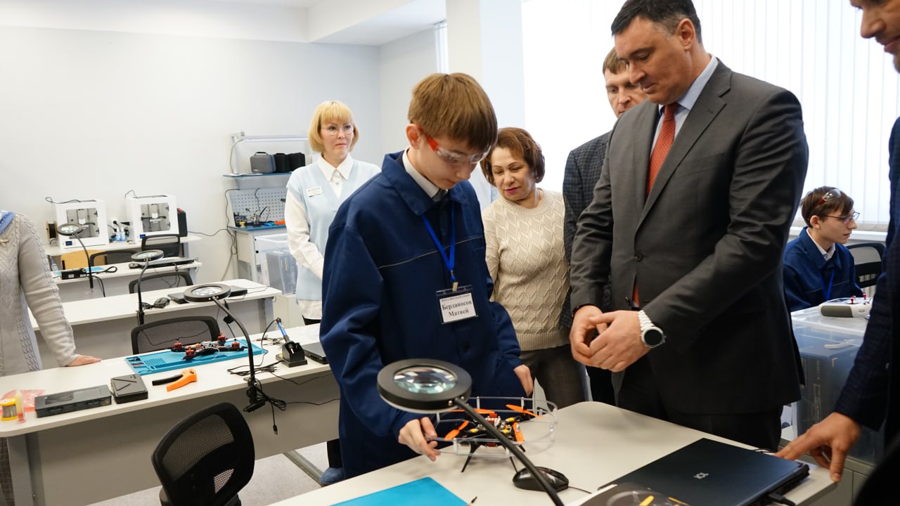 Депутаты Думы и мэр посетили урок по управлению беспилотниками (фоторепортаж)