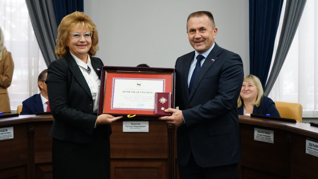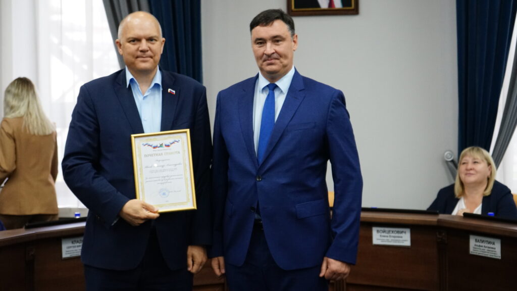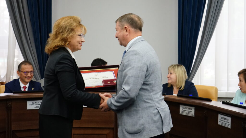 Глава города Руслан Болотов за многолетнюю трудовую деятельность и значительный вклад в развитие местного самоуправления Почетной грамотой мэра наградил депутатов Александра Друзенко (избирательный округ № 12), Алексея Вепрева (избирательный округ № 14), Александра Квасова (избирательный округ № 15), Александра Сафронова (избирательный округ № 32). Благодарности вручил Алексею Кудрявцеву (избирательный округ № 18) и Ростиславу Белых (избирательный округ № 33).