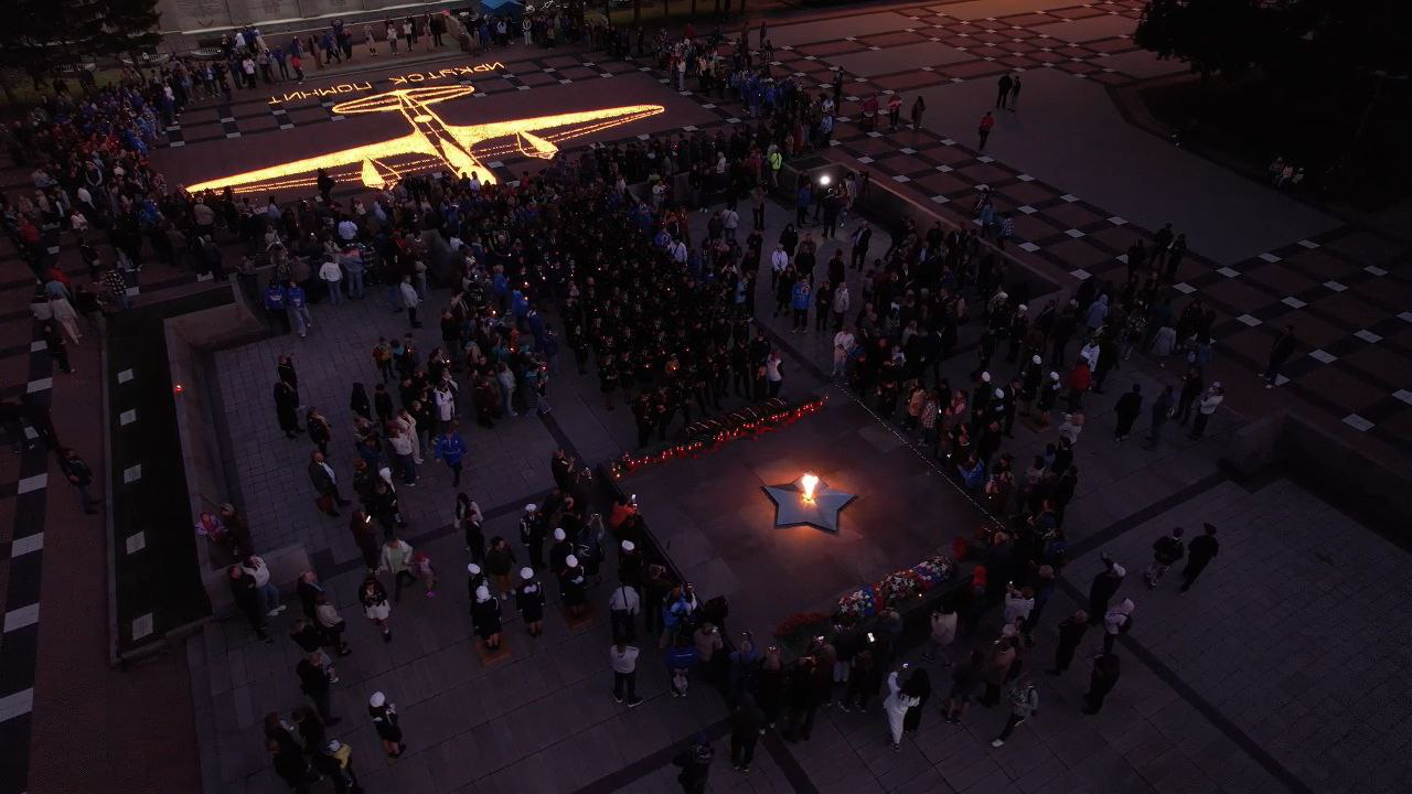 Участники акции создали из почти 10 000 свечей экспозицию военного бомбардировщика Ил-4. Это воздушное судно серийно выпускалось для фронта в годы войны Иркутским авиационным заводом.