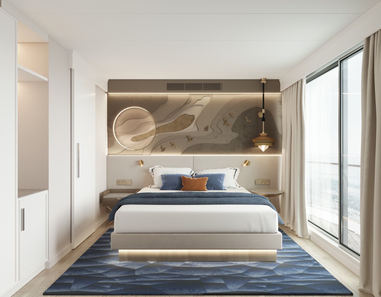 Кроме того, на судне предусмотрена каюта для пассажиров с ограниченными возможностями здоровья (инвалидов-колясочников) и три каюты в стандартном исполнении, но с кнопкой вызова персонала возле кровати (к примеру, для инвалидов по зрению). На борту появится конференц-зал вместимостью до 100 человек, спа-центр, тренажерный зал, детская игровая комната.