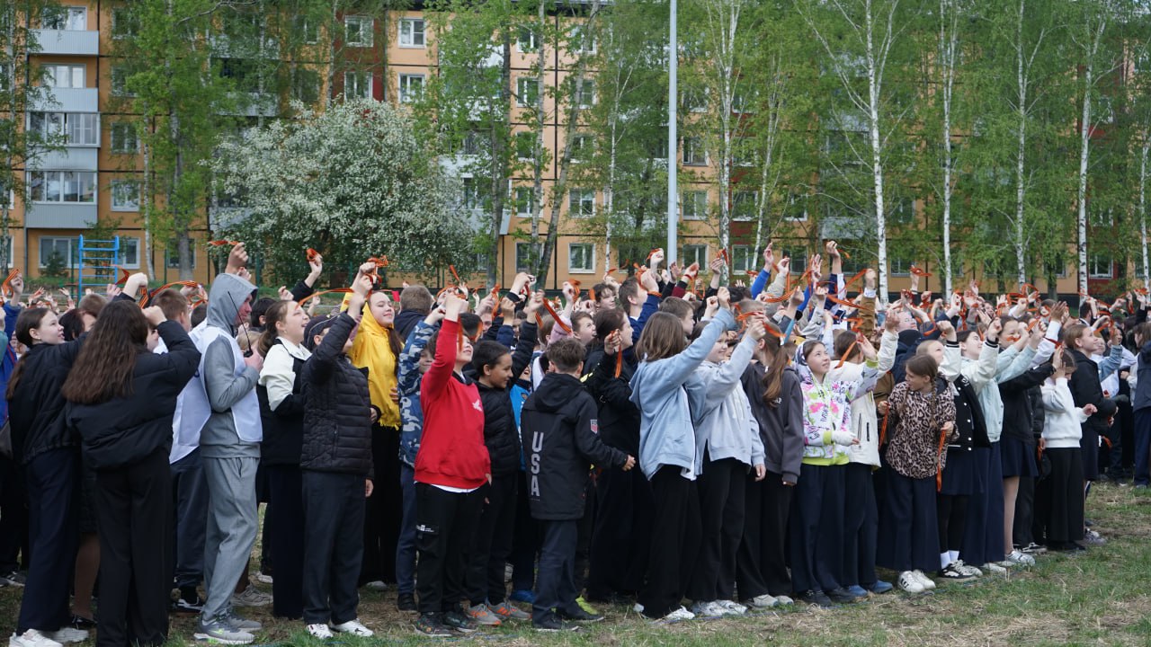 Школьники Ново-Ленино приняли участие во флешмобе к 80-летию Победы в Великой Отечественной войне. Акция прошла при поддержке депутата от избирательного округа № 4 Евгения Савченко.