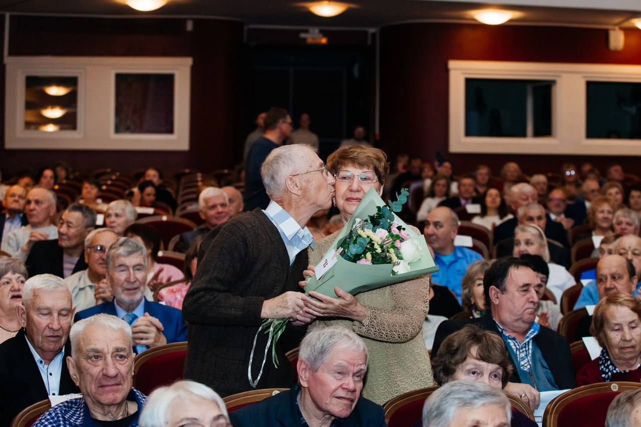В театре юного зрителя юбилярам вручили подарки и благодарственные письма мэра. Всего собралось 145 семей. Больше всего тех, кто в 2025 году отметили 50-летие совместной жизни – 91 пара. 31 семья отпраздновала 55 лет со дня свадьбы, 19 пар – 60 лет. Были и три пары, за плечами которых 65 лет совместной жизни. А супруги Алексей Николаевич и Надежда Матвеевна Труфановы отметили благодатную свадьбу — 70 лет. Их секрет семейного счастья, поделились юбиляры, прост: жить и работать, поддерживая друг друга.