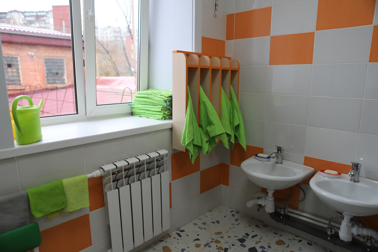 В детском саду № 116 благодаря программе «Есть решение» сделали ремонт в двух группах: в туалетных комнатах уложили плитку на стенах, заменили сантехнику, мебель. Также отремонтировали помещения, где располагаются посудомоечные.