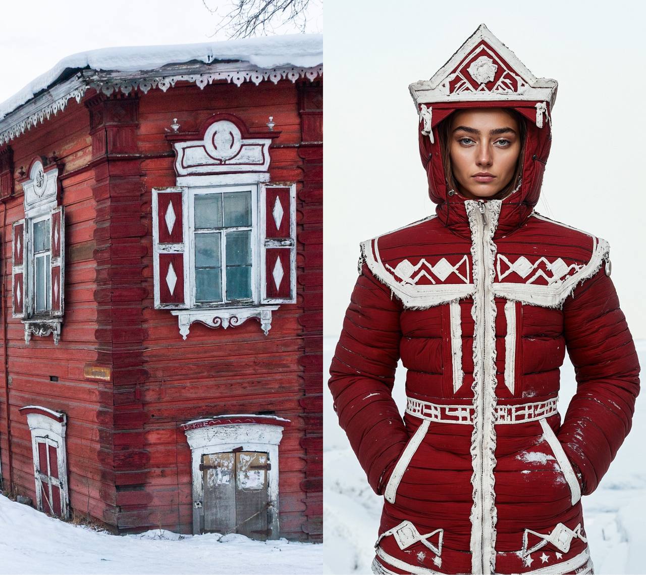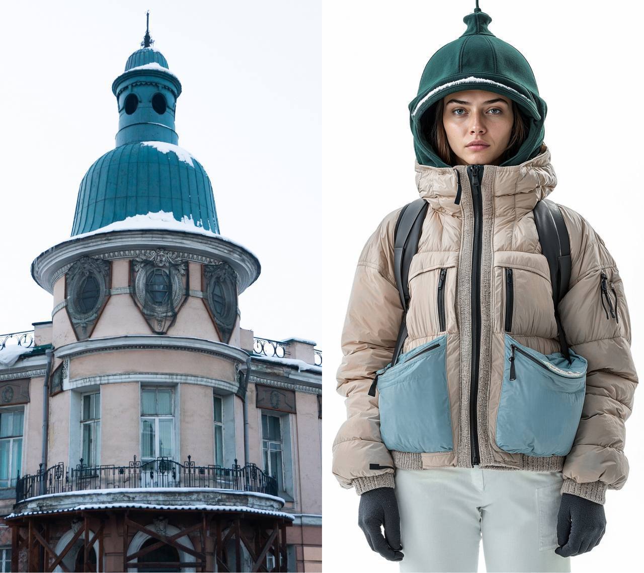 Пуховики в стиле иркутских популярных зданий создала нейросеть по запросу дизайнера Сергея Тарасова.