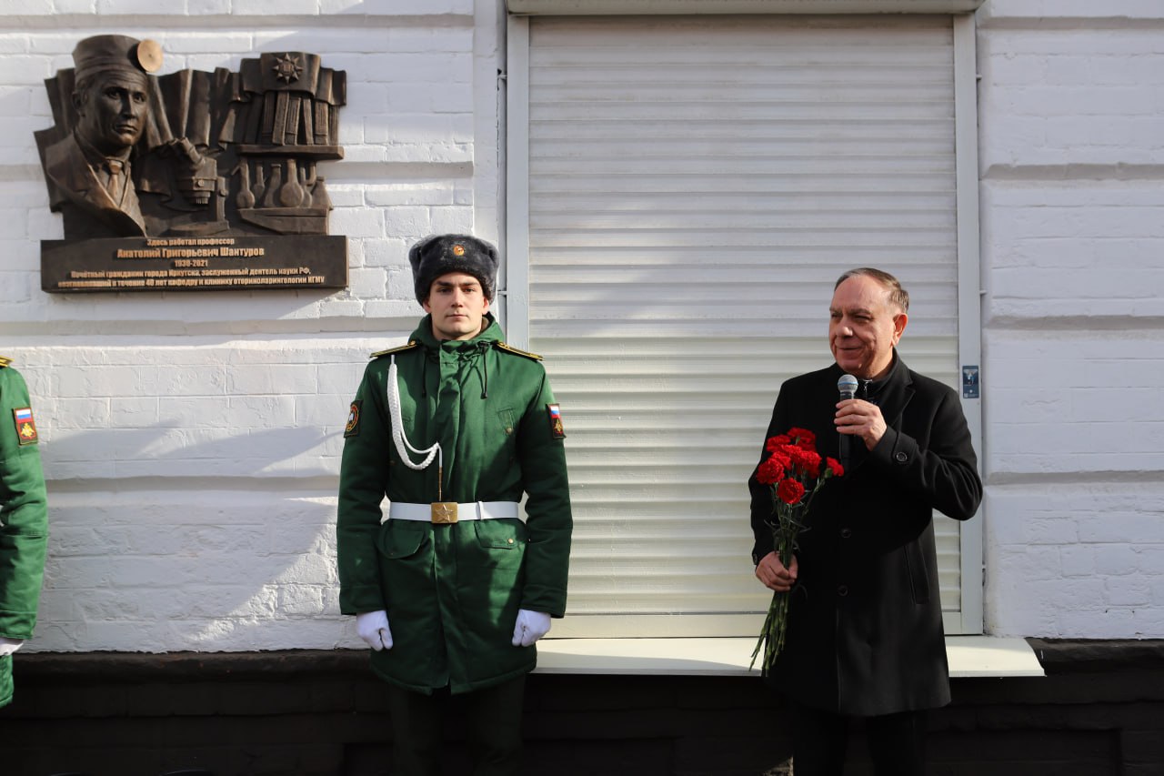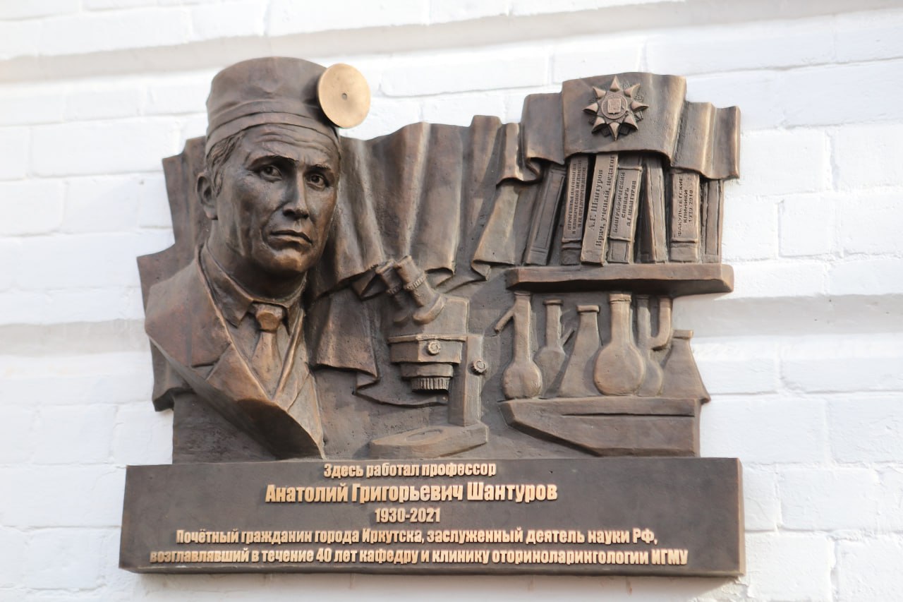 Мемориальную доску профессору Анатолию Шантурову открыли в Иркутске. Ее разместили на фасаде здания ЛОР-клиники Иркутского государственного медицинского университета по улице Свердлова, 14. Автор изображения профессора – скульптор Евгений Ставский.
