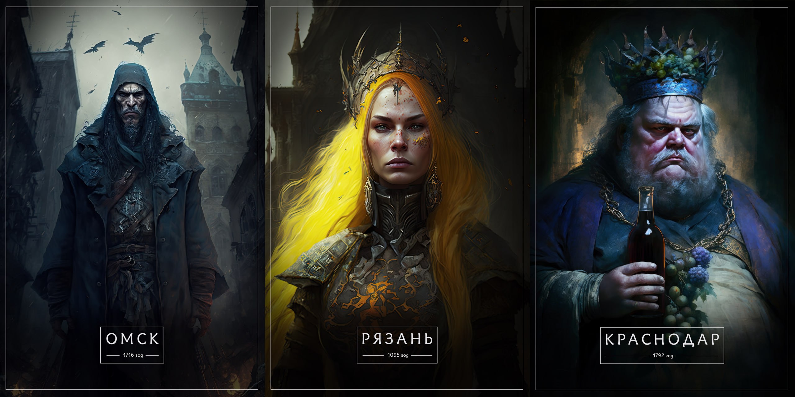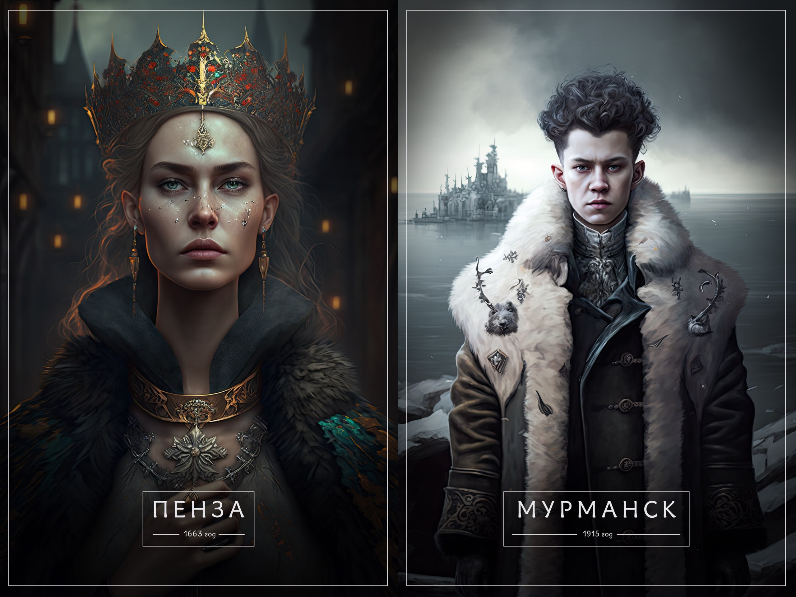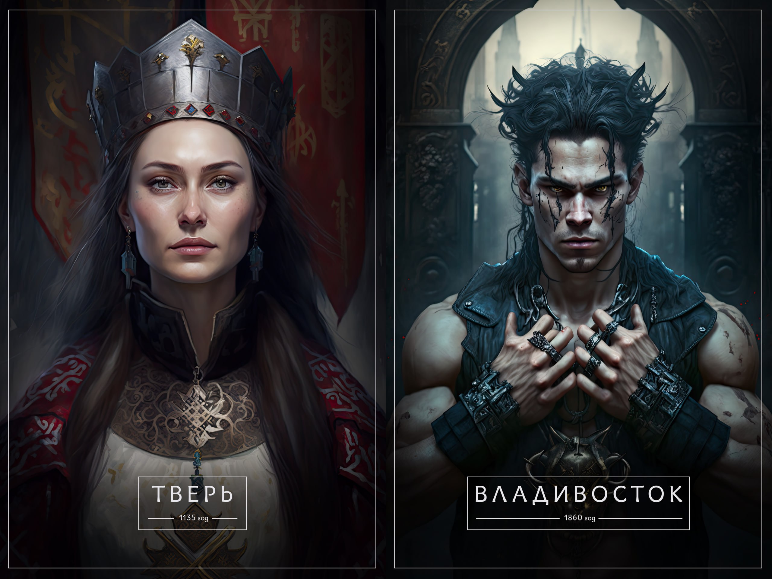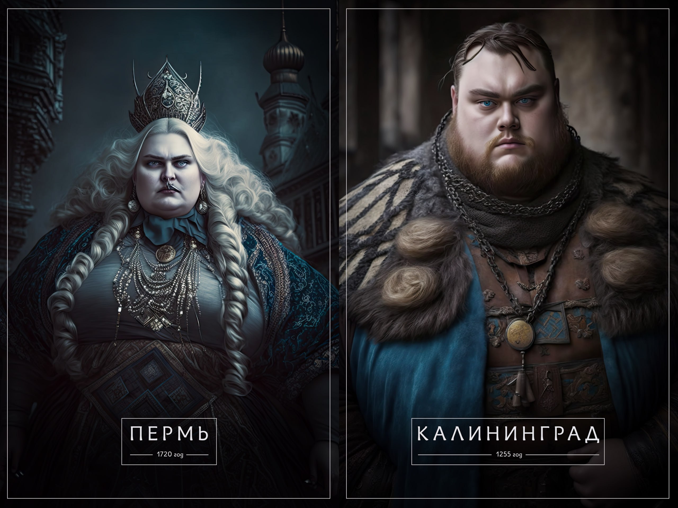 Тверь примерила железную корону, украшенную рубинами. Владивосток украсил пальцы брутальными кольцами. Пермь выглядит как очень суровая женщина с толстыми косами.
