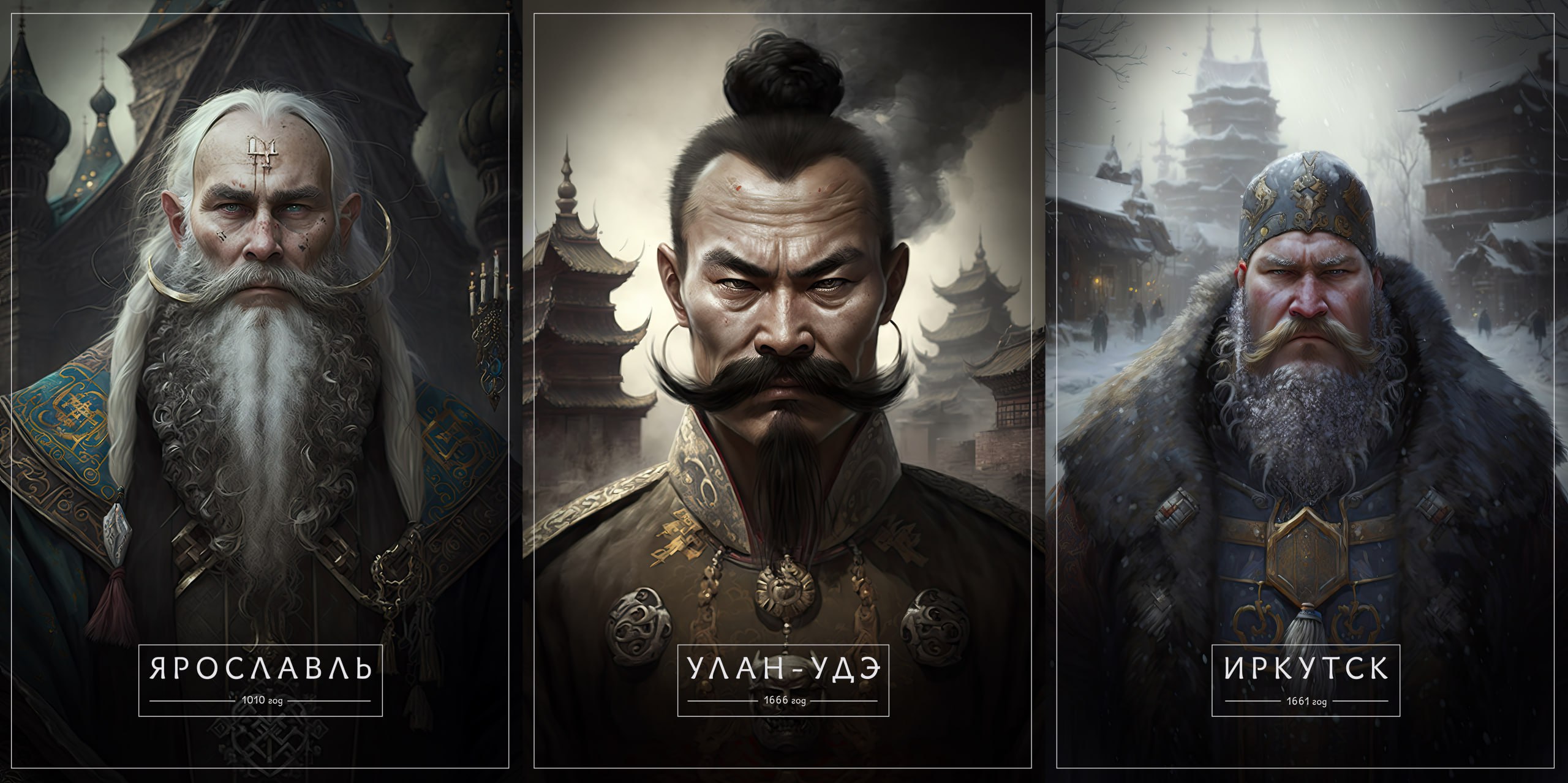 Улан-Удэ похож на сурового боевого монаха-буддиста. Москву и Санкт-Петербург представили как модную пару, где девушка Москва в стильном кокошнике, а северный мужчина с уложенными бородой и усами.