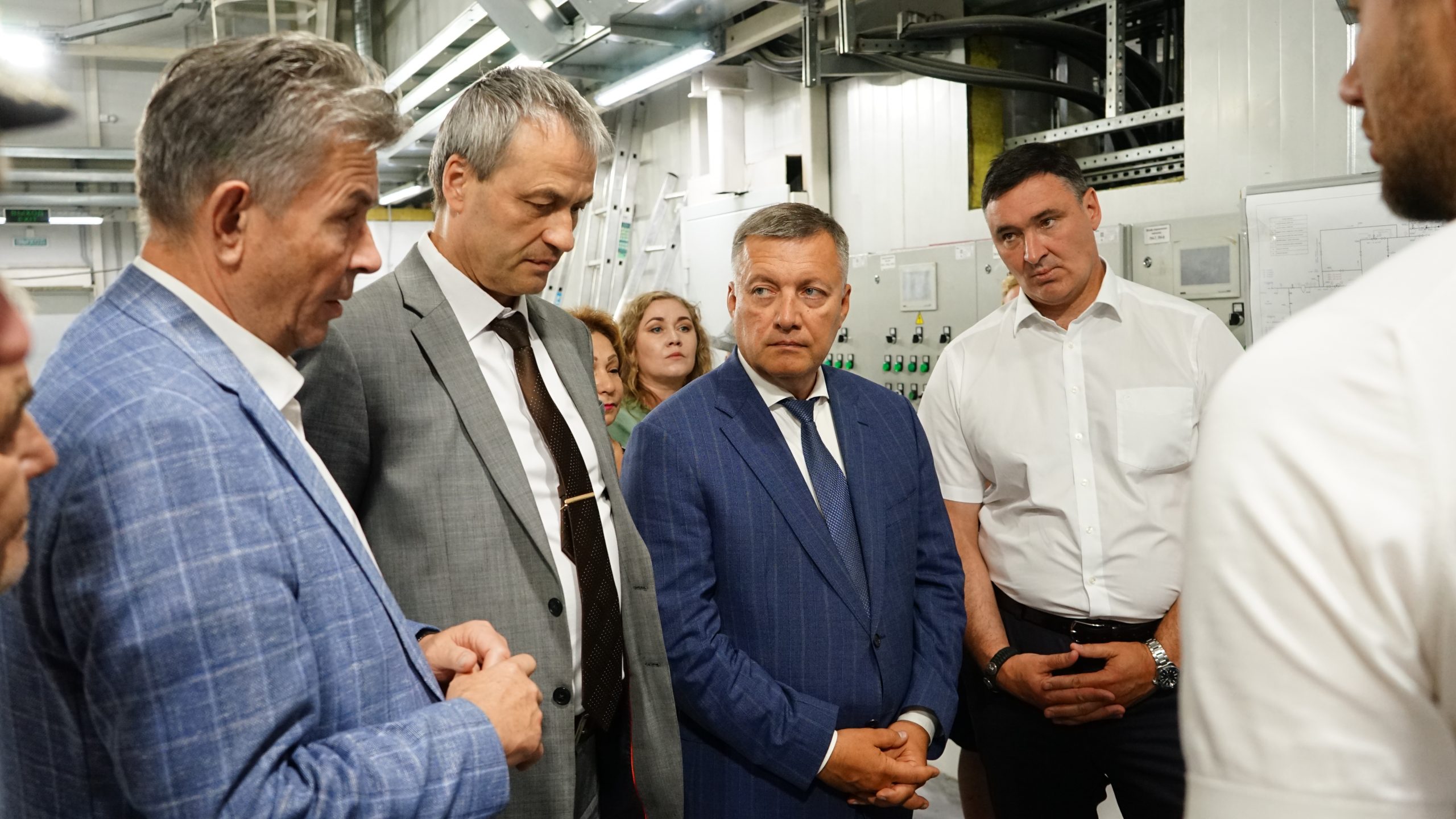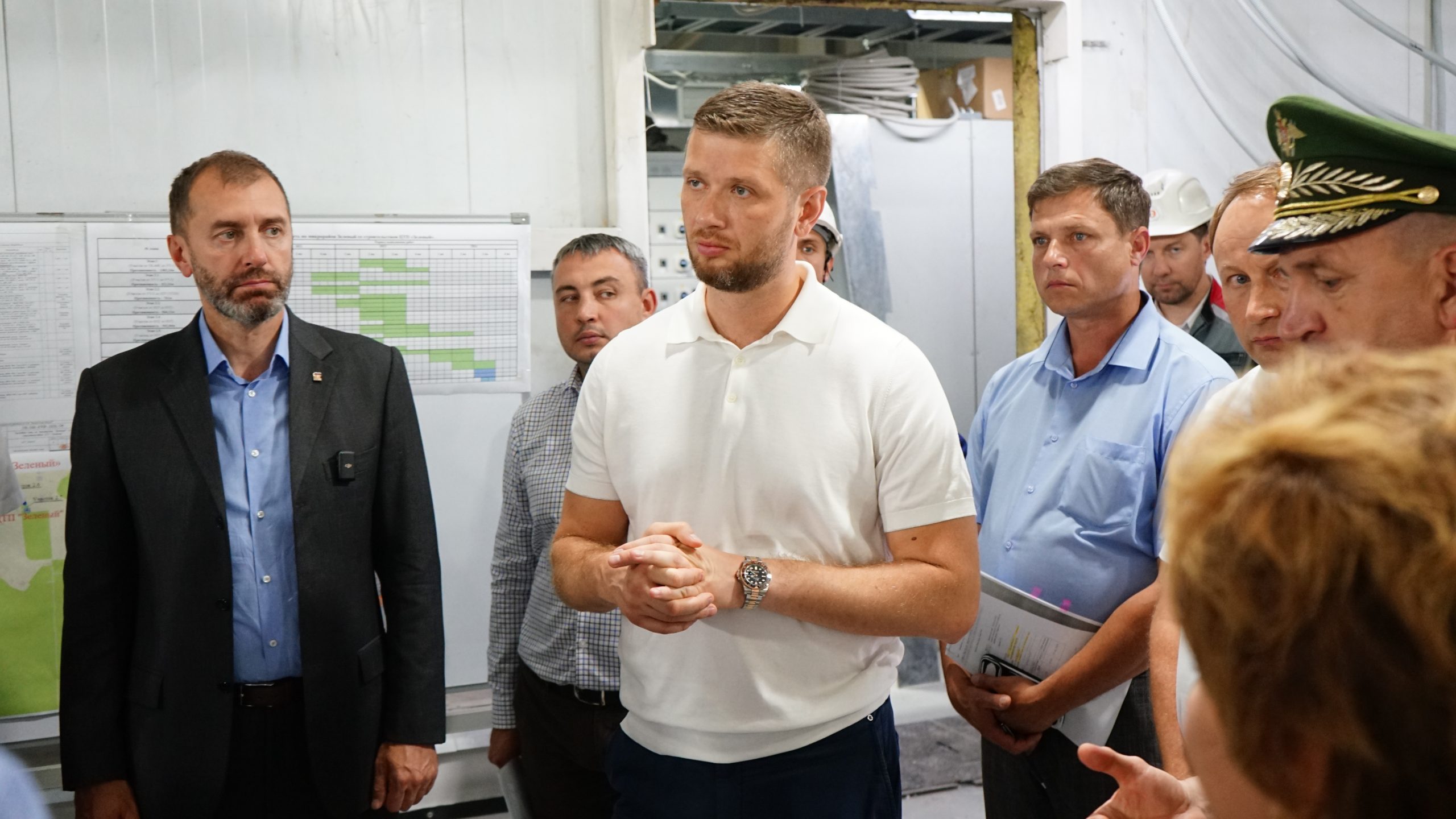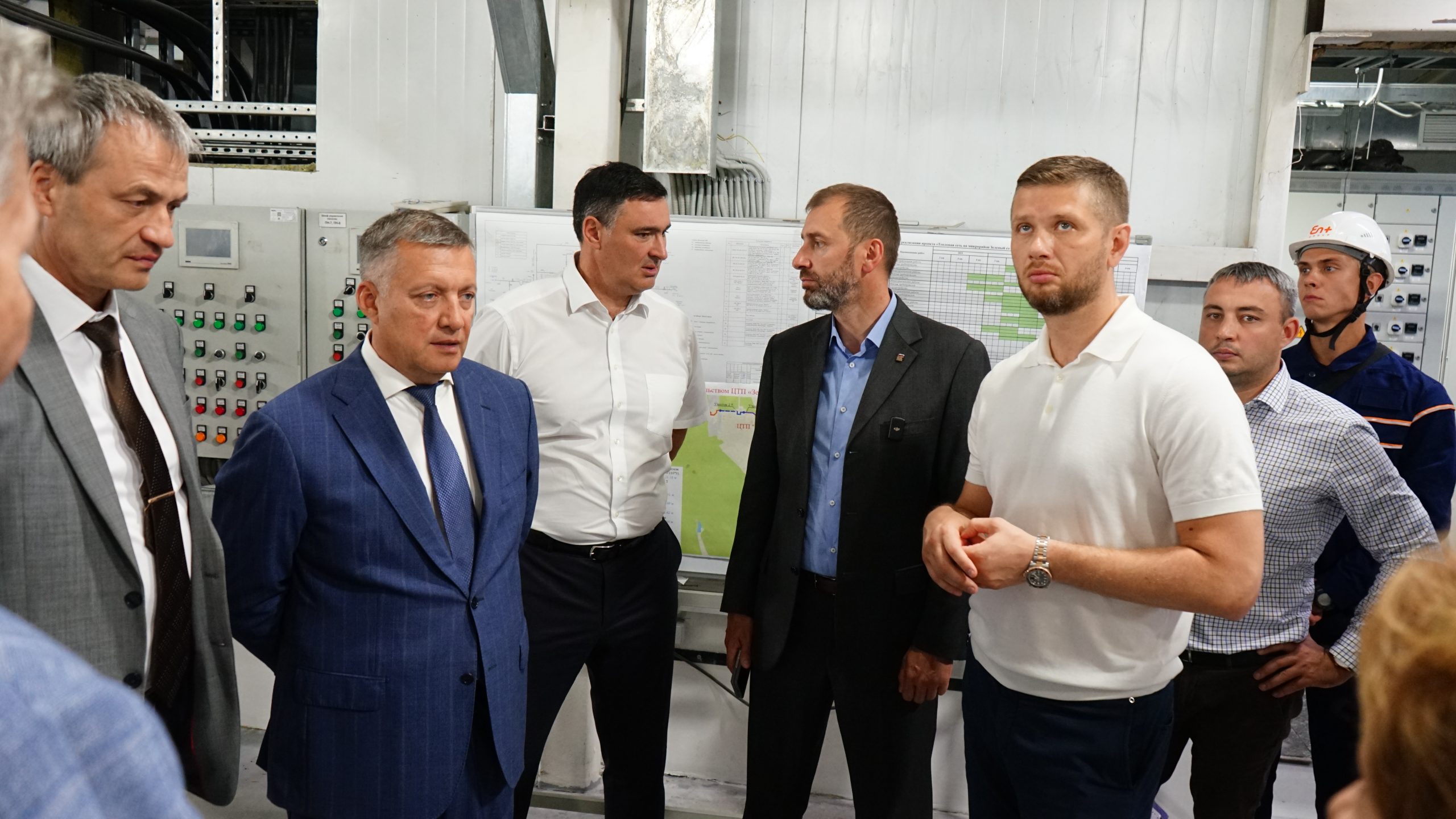 Центральный тепловой пункт строится в микрорайоне Зеленый. Как проходят работы, проверили губернатор Иркутской области Игорь Кобзев, председатель Заксобрания региона Александр Ведерников, министр жилищной политики, энергетики и транспорта области Анатолий Никитин, мэр Иркутска Руслан Болотов, спикер Думы Евгений Стекачев, депутат по избирательному округу № 23 Антонина Корочкина, гендиректор ООО «Байкальская энергетическая компания» Олег Причко.