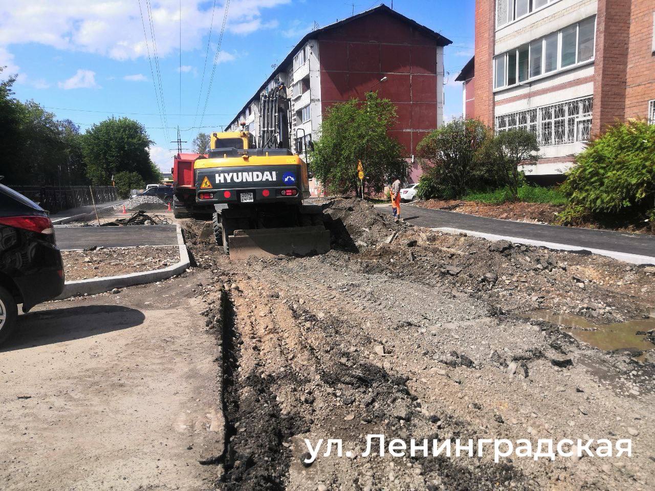 — Ленинградская – обустройство тротуаров, демонтаж покрытия проезжей части, установка бордюров;