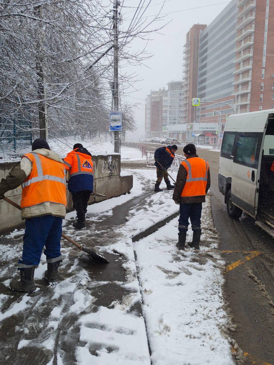 Вручную расчищаем остановки общественного транспорта и подходы к ним. Работы ведутся с 5 часов утра. В течение дня увеличим количество специализированной техники во всех районах, приступим к механизированной уборке дорог и тротуаров,− рассказал руководитель «Иркутскавтодора» Василий Ефремов.