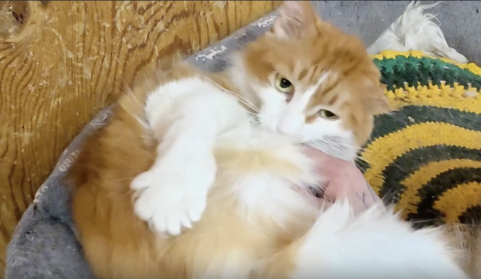 Она меня покусала очень сильно много раз. Реабилитация у этой кошки длилась три года. И только спустя это время она расслабилась.